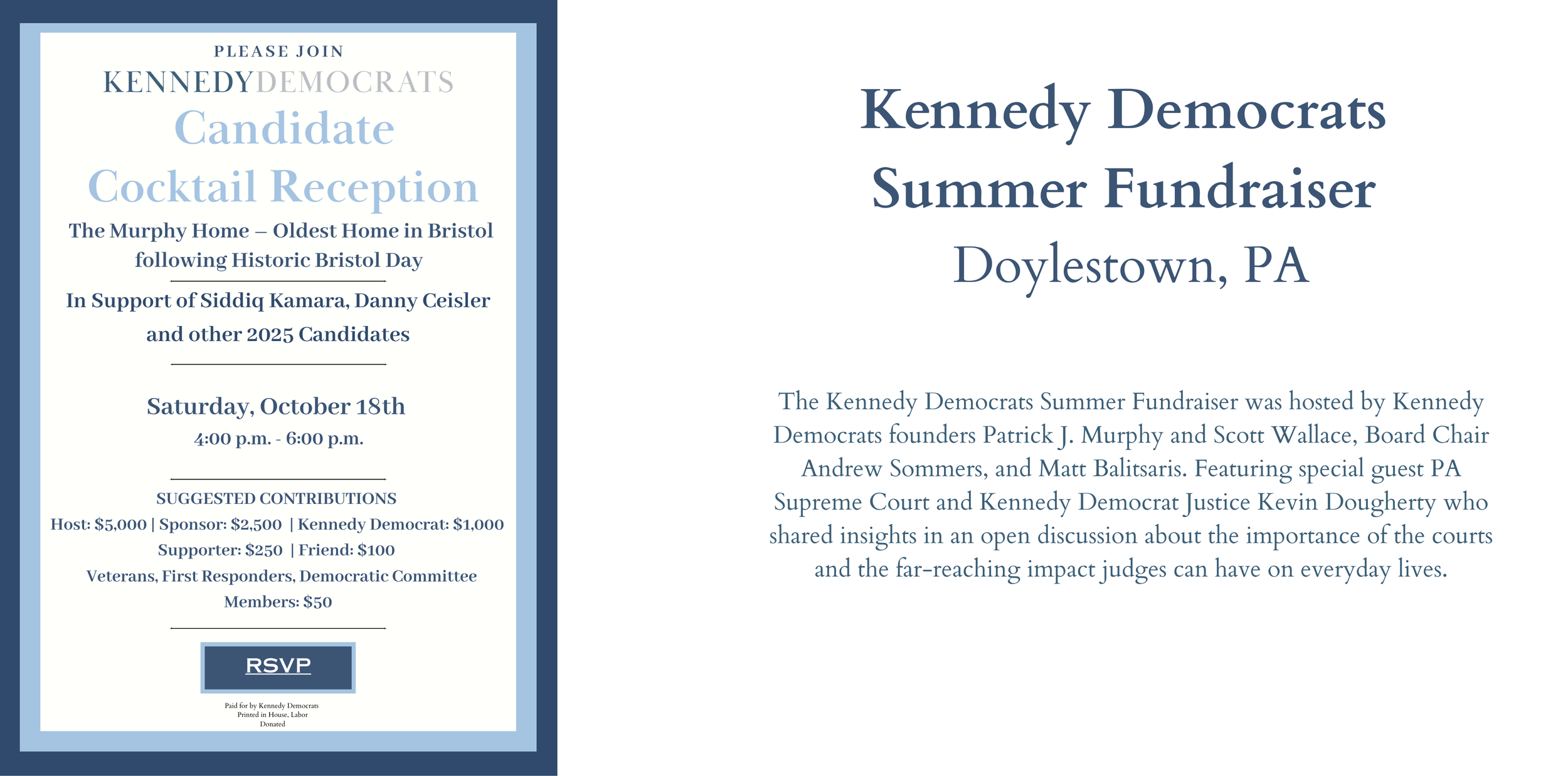Kennedy Democrats Events empower voters to create change in Pennsylvania. Since 2019, we have been working to flip the PA House and Senate. Our events encourage political involvement among everyone, focusing on issues that affect everyone. We recognize the power of youth activism and are dedicated to supporting causes that matter to them. Together, we can create a better future for Pennsylvania. Join us at our events to connect with like-minded individuals and engage in meaningful discussions about shaping a brighter future for everyone.